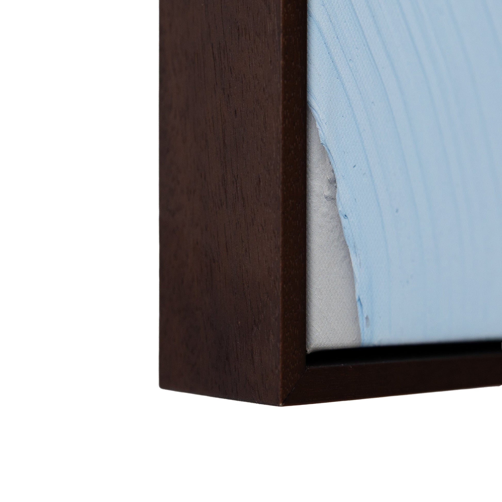 - Hand-stretched over FSC-certified, finger-jointed New Zealand pine, and float framed in FSC-certified Meranti stained in a walnut finish